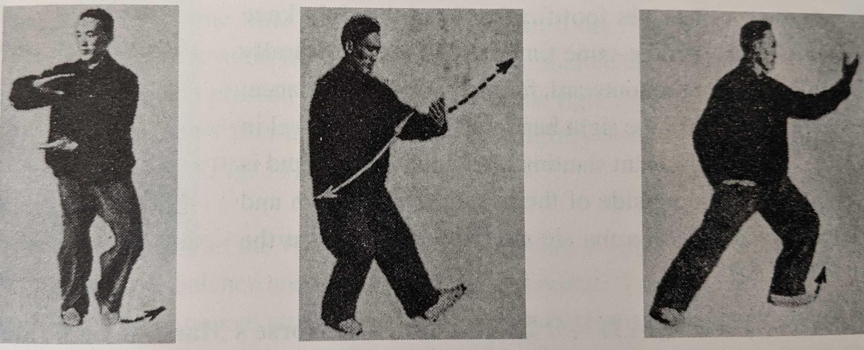 Twenty-four, by contrast, is more left-right balanced. Grasp the Bird’s Tail is practiced on both sides in 24, and Snake Creeps Down is performed on both sides as well, which makes the Golden Rooster Standing on Right Leg considerably more difficult than it is in the 108. This left-right balance turned out to be a trend; nowadays, in contemporary forms, we practice almost everything on both sides.